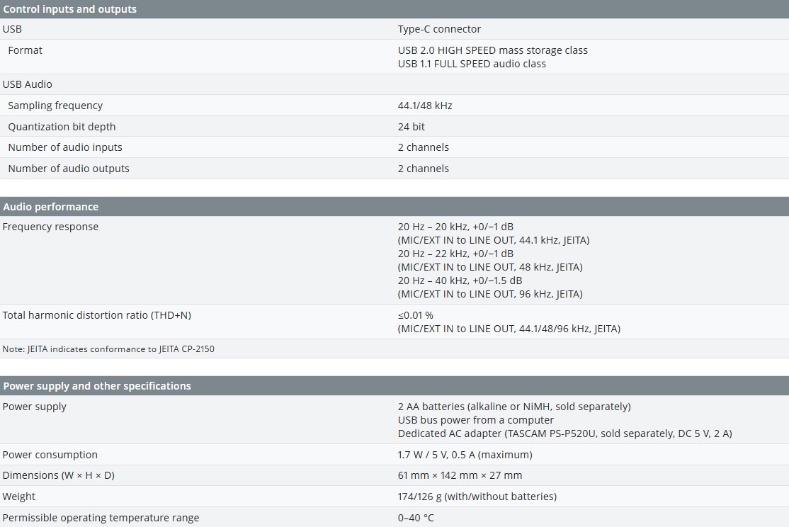 Tascam DR-05XP Audio recorder