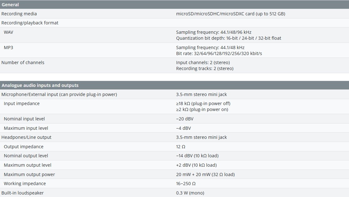 Furthermore, the recorder is equipped with all the conveniences that belong to this, including a low-cut filter, a peak reduction meter, limiter, audio recording pre-recording buffer of 2 seconds, self-timer and much more. There is even a built-in tuner. The tripod adapter on the bottom is also very practical with which you can easily mount the DR-05XP Audio Recorder on a tripod or camera tripod. This device works on 2 x AA alkaline batteries, these are not included and must be ordered separately.